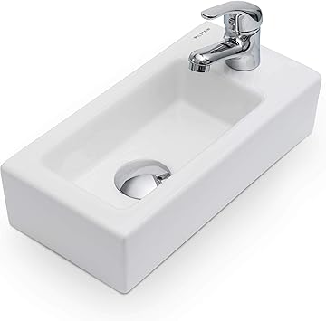 Vilstein waschbecken gäste wc hänge oder aufsatzwaschbecken keramik eckig klein 36 5cm x 25 5cm x 10 5cm weiß.