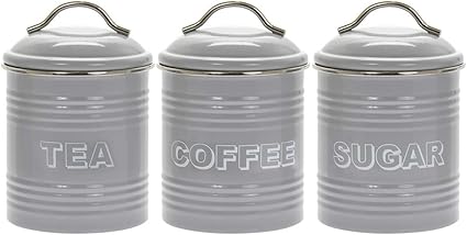Canisters and jars at littlewoods. Vintage chic or contemporary a functional and. Grey & white retro canisters. With both coffee, tea and sugar canisters as well as bread tins available, add a modern touch with a traditional look to your pantry. Tea coffee sugar canister set porcelain kitchen storage set of 3 designs. Personalised create your own black glass canister with bamboo lid. The airtight lids keep your hot drink essentials fresh and ready when you're in need of afternoon refreshment. Same day delivery 7 days a week £3.95, or fast store collection. Set of 3 lovello cream tea coffee and sugar canisters. Gbp prices are indicative, correct euro pricing is shown in the checkout. We've got a great selection of tea, coffee and sugar canisters so you'll always have everything on hand when you're in need for a cuppa. Stainless steel and glass sugar canister. Introduce some secret storage to your kitchen with tea, coffee and sugar canisters.